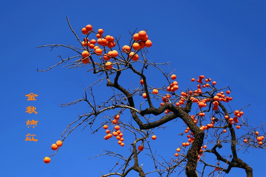金秋十月,景物旖旎。在这个丰收的季节,山头沟坡除了层林尽染、绵延无尽的美丽美景,尚有那沿着山梯,一层一层、一片一片的累累硕果。秋天最迷人的景致莫过于此,霜降事后,落叶纷飞,红彤彤的柿子挂满枝头,与蓝天融为一体,绘就最美的画卷。(田文龙)