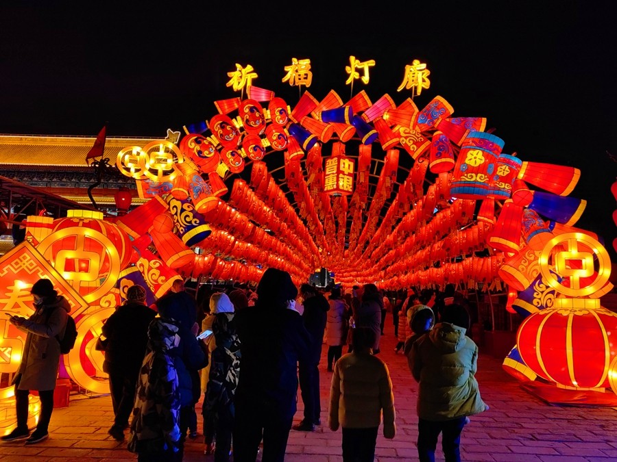 城墙灯会是西安最具代表性的春节民俗运动。春节时代,与家人登城墙赏花灯共度新春,在祈福灯廊内写下自己的新年愿望,感受最浓郁、最好玩、最有趣的中国年味。(大梵宇矿  张洋)