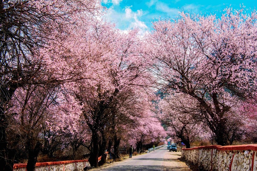 林芝的桃花是高原桃花,树高花繁,开得狂野,许多地方山脚桃花盛开,山上则是雪峰,独吞风韵。林芝桃花遍布境内,其中,波密县波堆藏布流经的倾多镇——许木乡的桃花沟绵延30公里,号称中国最长的桃花沟。(文家坡矿  董凤艳)